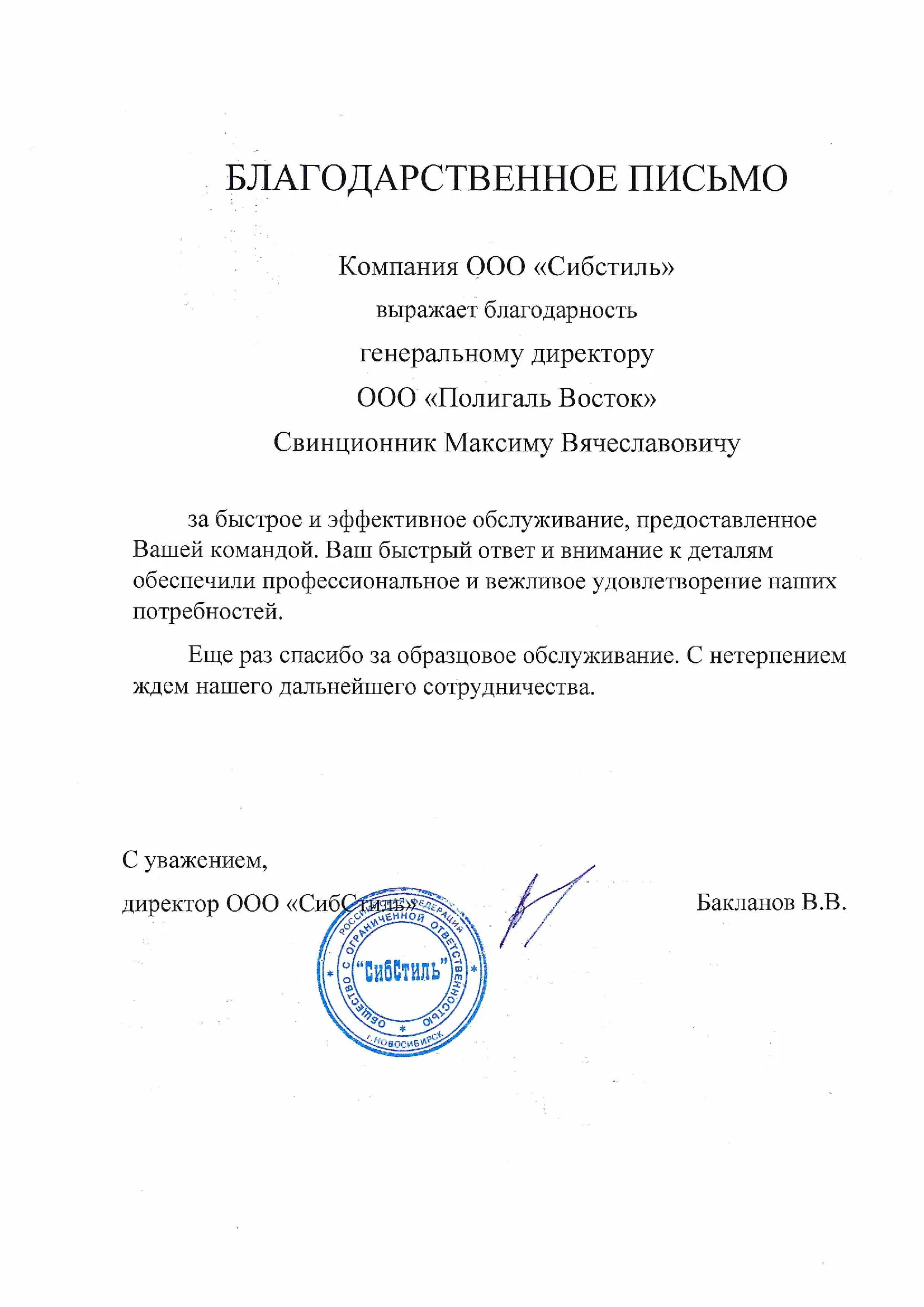 Благодарственные письма