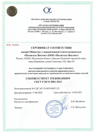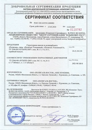 Вся продукция проходит контроль на заводе и имеет сертификаты соответствия. Мы работаем напрямую с производителем, поэтому предоставляем официальные документы и гарантируем оригинальное качество. На складе всегда поддерживается правильная база хранения, что исключает деформации и дефекты товара. На листы оргстекла наносится специальная защитная пленка без логотипа. Пленка надежно защищает листы оргстекла при транспортировке. В целях обеспечения гарантии качества на сам лист наносится специальная компьютерная маркировка с указанием № экструдера, даты и времени производства данной партии листов.